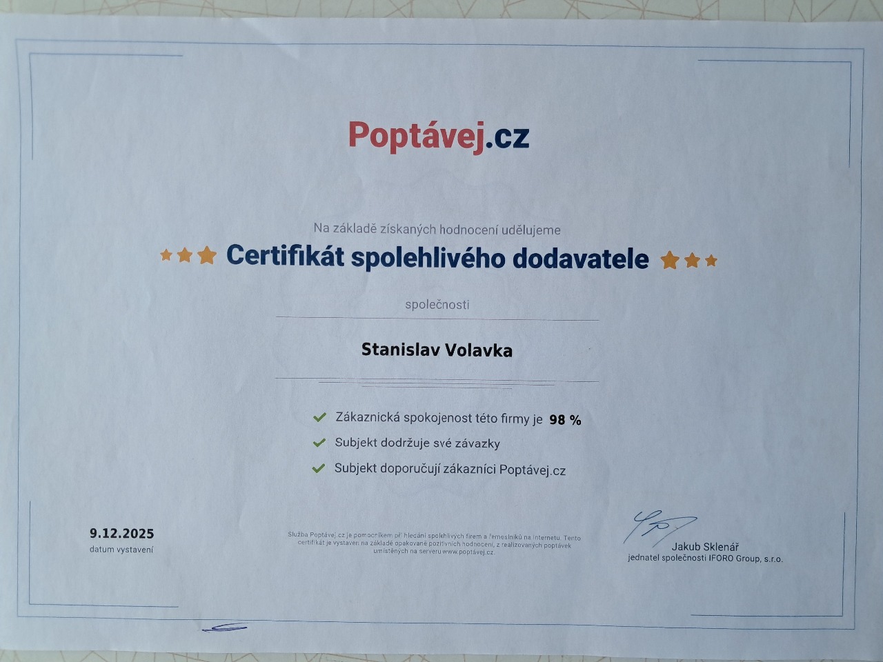 • Osvědčení